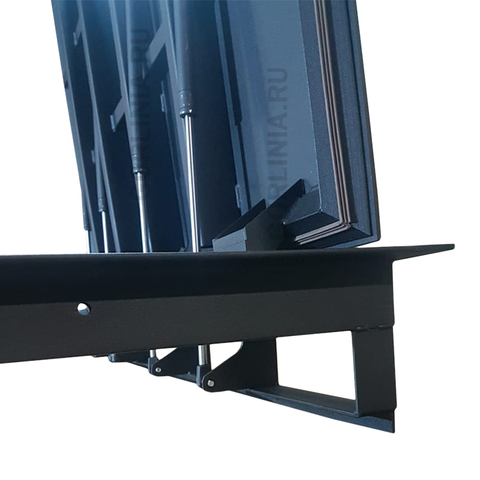 Подъемный механизм реализован на съемных петлях со вспомогательными газлифтами, замка собственной разработки. Разборную дверь удобно монтировать в напольный проем.