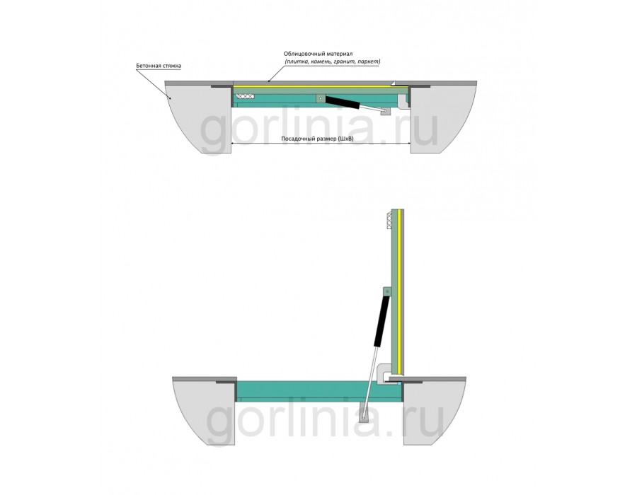- для открывания используются пневматические упоры.