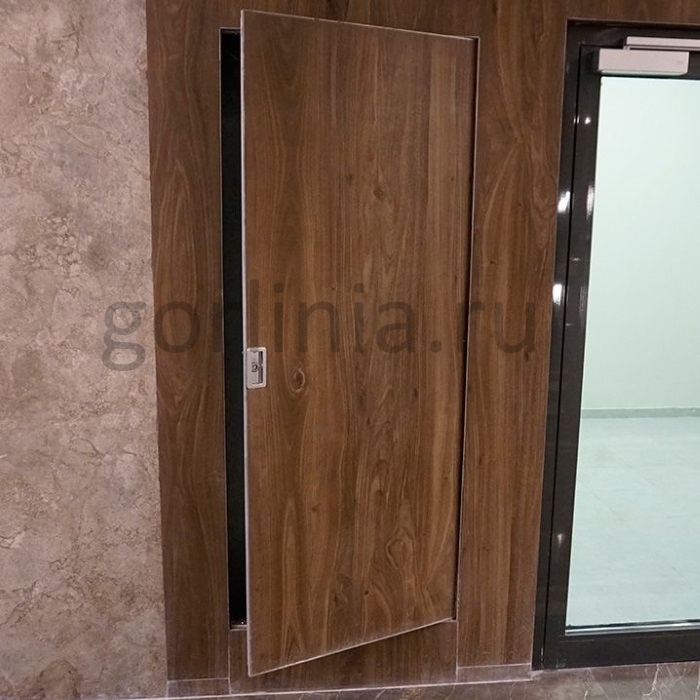 Створка открывается с лицевой стороны на себя за утопленную ручку или нажатием. Внутренняя часть полотна и коробки отделке не подлежит.